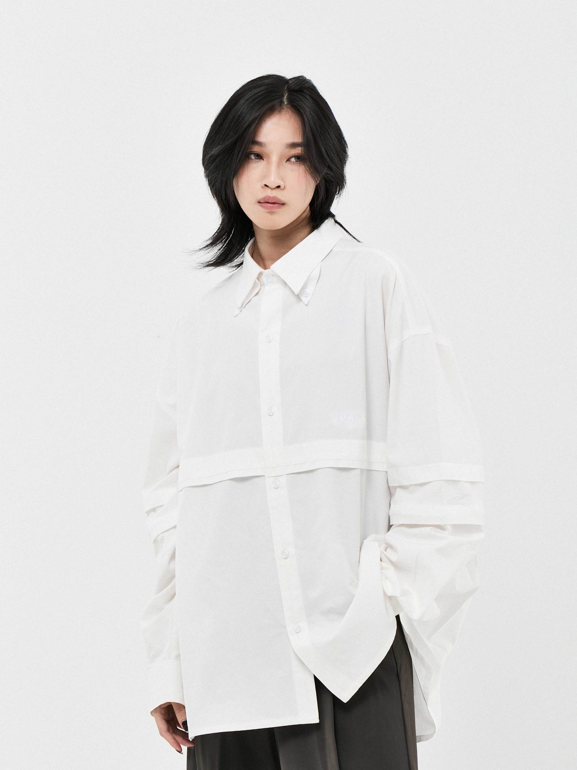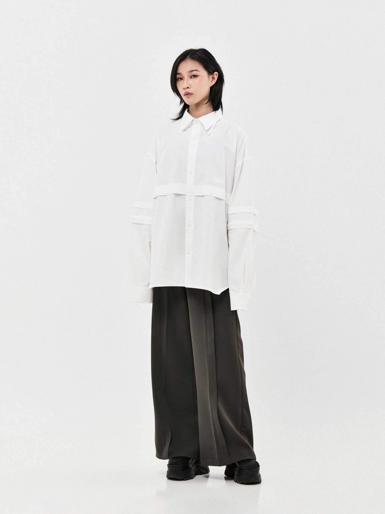 This versatile unisex shirt combines functionality with style. Featuring detachable sleeves for easy conversion to short sleeves, it adapts to any occasion. A small front embroidery adds subtle detail, while back dart accents enhance the fit. The unique double-collar design elevates its modern aesthetic, making it a standout piece for all wardrobes.