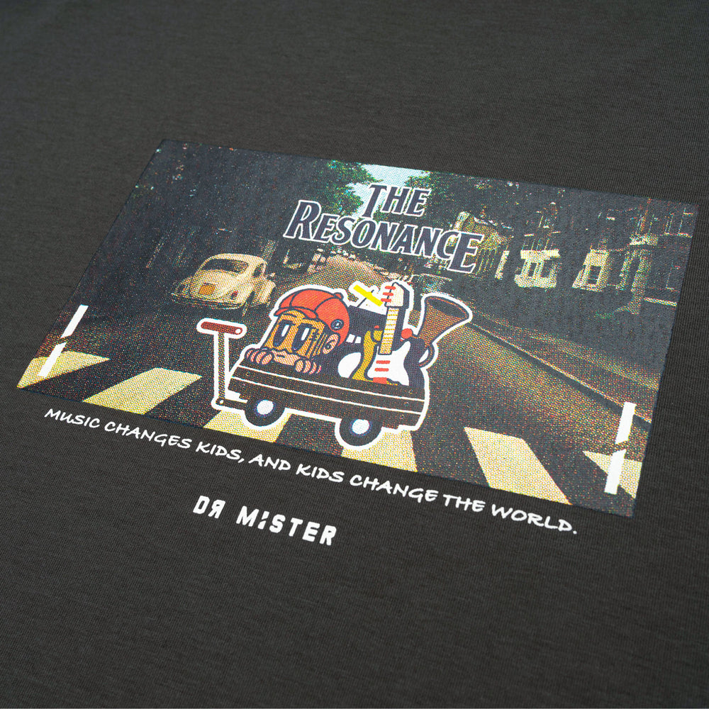 This broad tee comes in charcoal grey and is made from the premium cotton-polyester hybrid. The front features a mini “Tyge” road sign in black with the brand name. The back displays a “Tyge” crossing the iconic Abbey Road with a cart full of musical instruments, inspired by The Beatles album cover. The collection phrase and the brand name are below the main graphic.