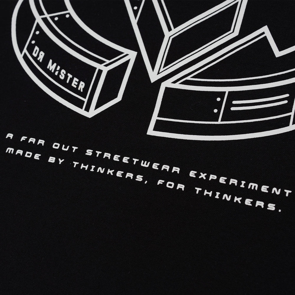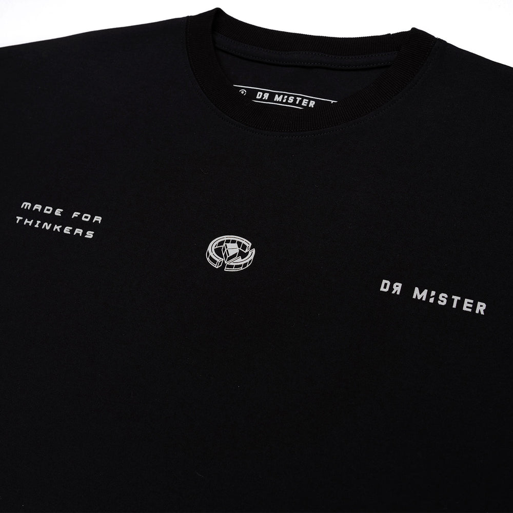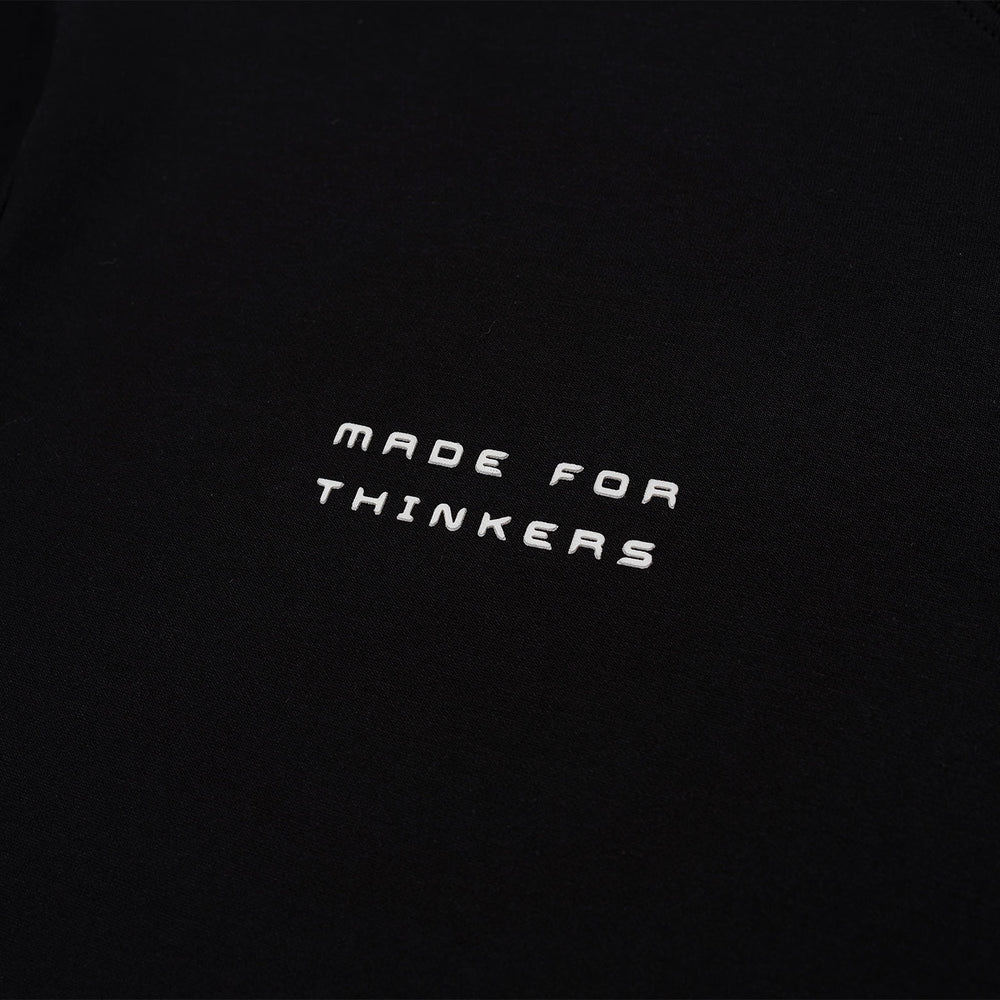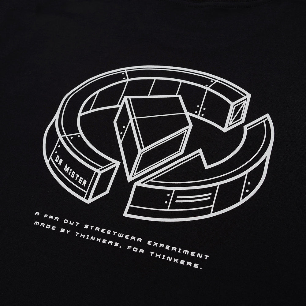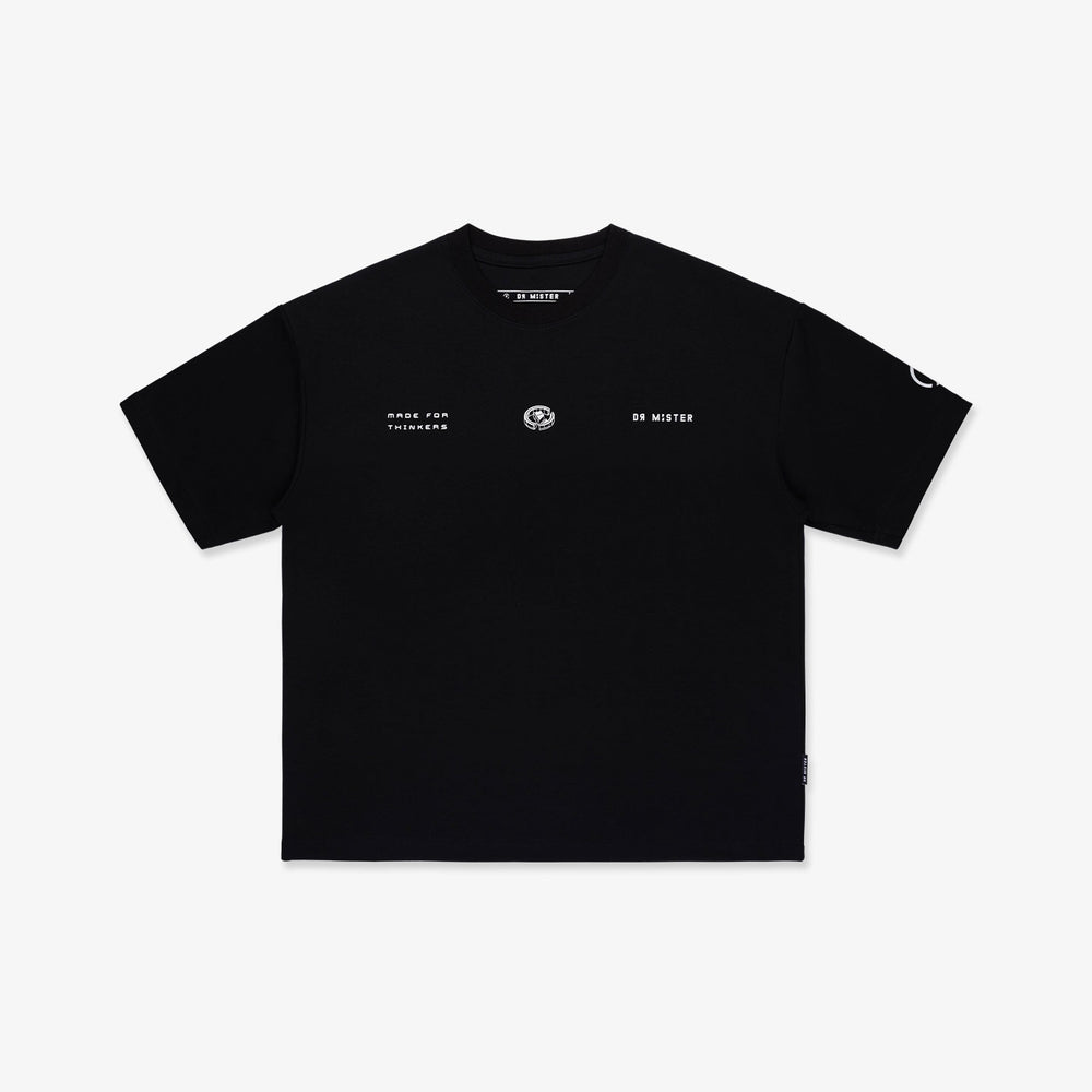 The Black Broad Tee features a main graphics of an imagined futuristic campus with our round logo at the back. The front minimally features the “Made by thinkers, for thinker” Phase together with a mini campus and logotype.