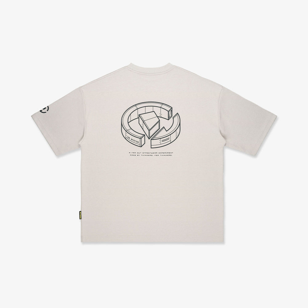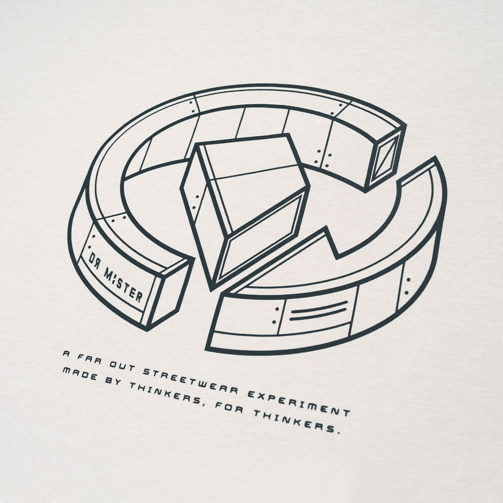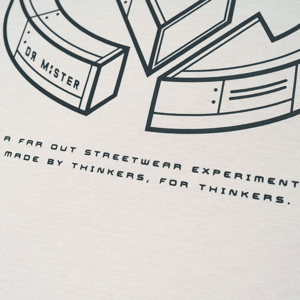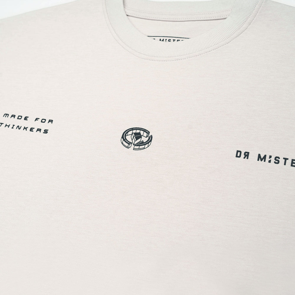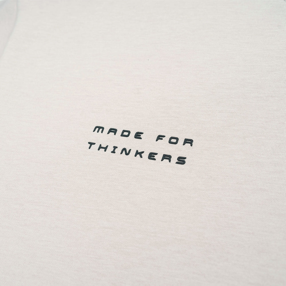 The Bone Beige Broad Tee features a main graphics of an imagined futuristic campus with our round logo at the back. The front minimally features the “Made by thinkers, for thinker” Phase together with a mini campus and logotype.