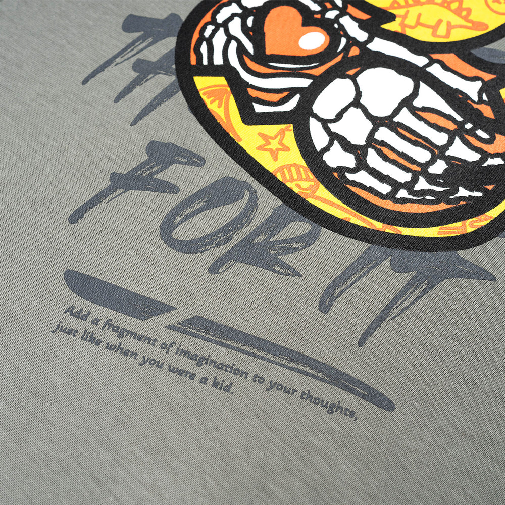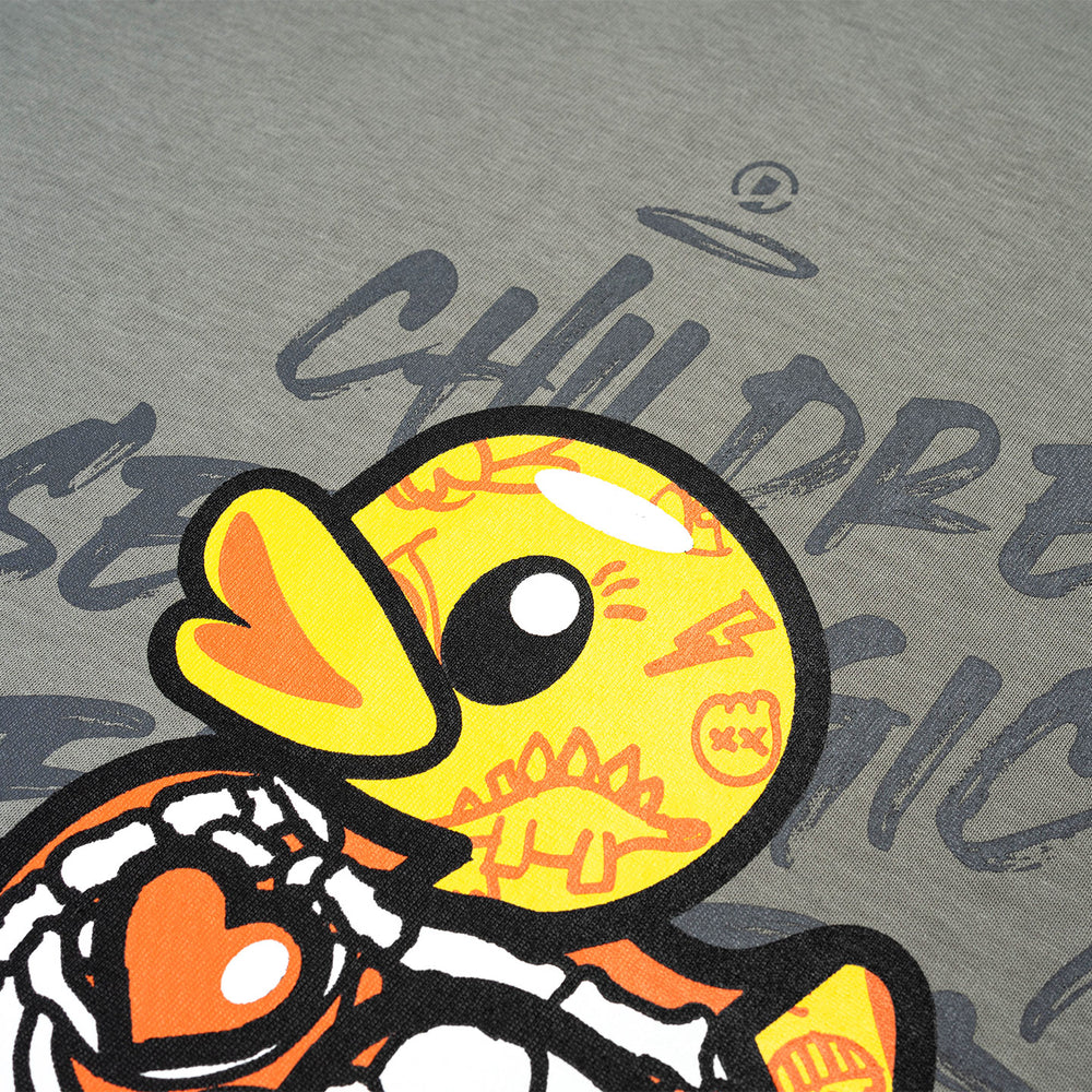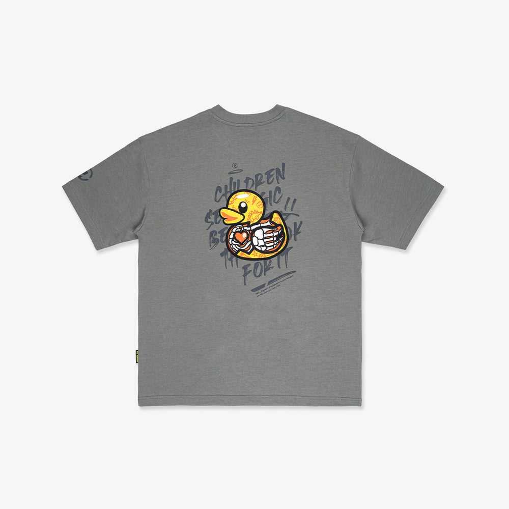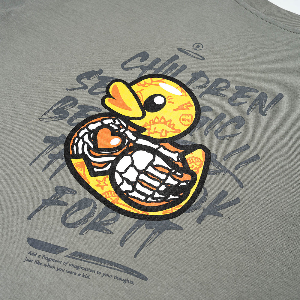 Cut from interlock cotton, this grey broad tee features a cracked rubber duck with an exposed heart and skeleton. The back showcases an oversized version of the same design overlaying the collection’s slogan of “Children see magic because they look for it,” alongside a quote of “Add a fragment of imagination to your thoughts, just like when you were a kid” at the bottom.