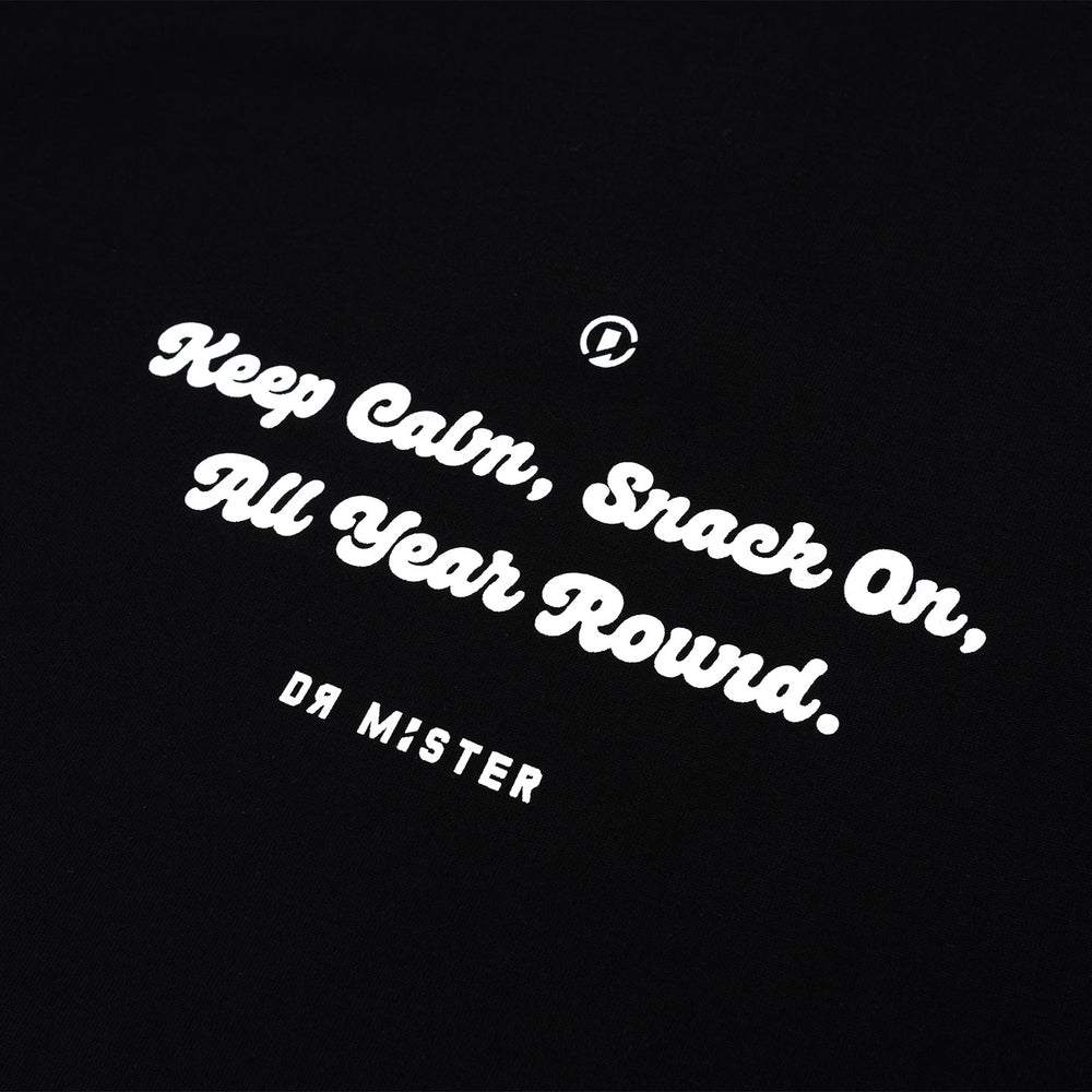 Designed from premium interlock combed cotton, the black casual broad tee features “Tyge Biscuit “ graphic in solid embroidery with sublimation print, features the tagline “Snack Hard, Play Harder” with full embroidered logotype while the back features the catchphrase “Keep Calm, Snack On, All Year Round.”