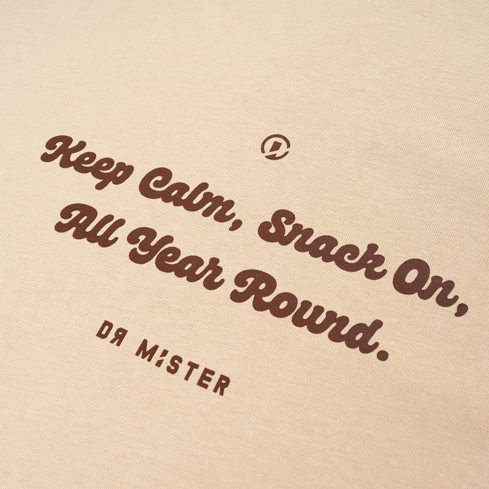 Designed from premium interlock combed cotton, the bone beige casual broad tee features “Tyge Biscuit “ graphic in solid embroidery with sublimation print, features the tagline “Snack Hard, Play Harder” with full embroidered logotype while the back features the catchphrase “Keep Calm, Snack On, All Year Round.”