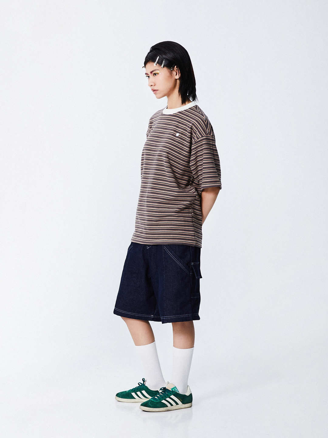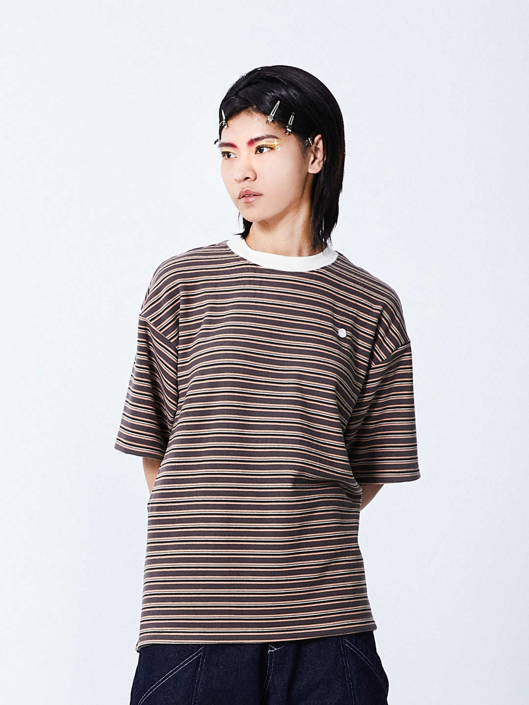 The Cozy stripes emblem tee has a cozy feel and a minimal stripes look. The tee has embroidery icon patches that add some charm and personality. The Cozy stripes emblem tee is a casual and cute tee that can be worn with any outfit.