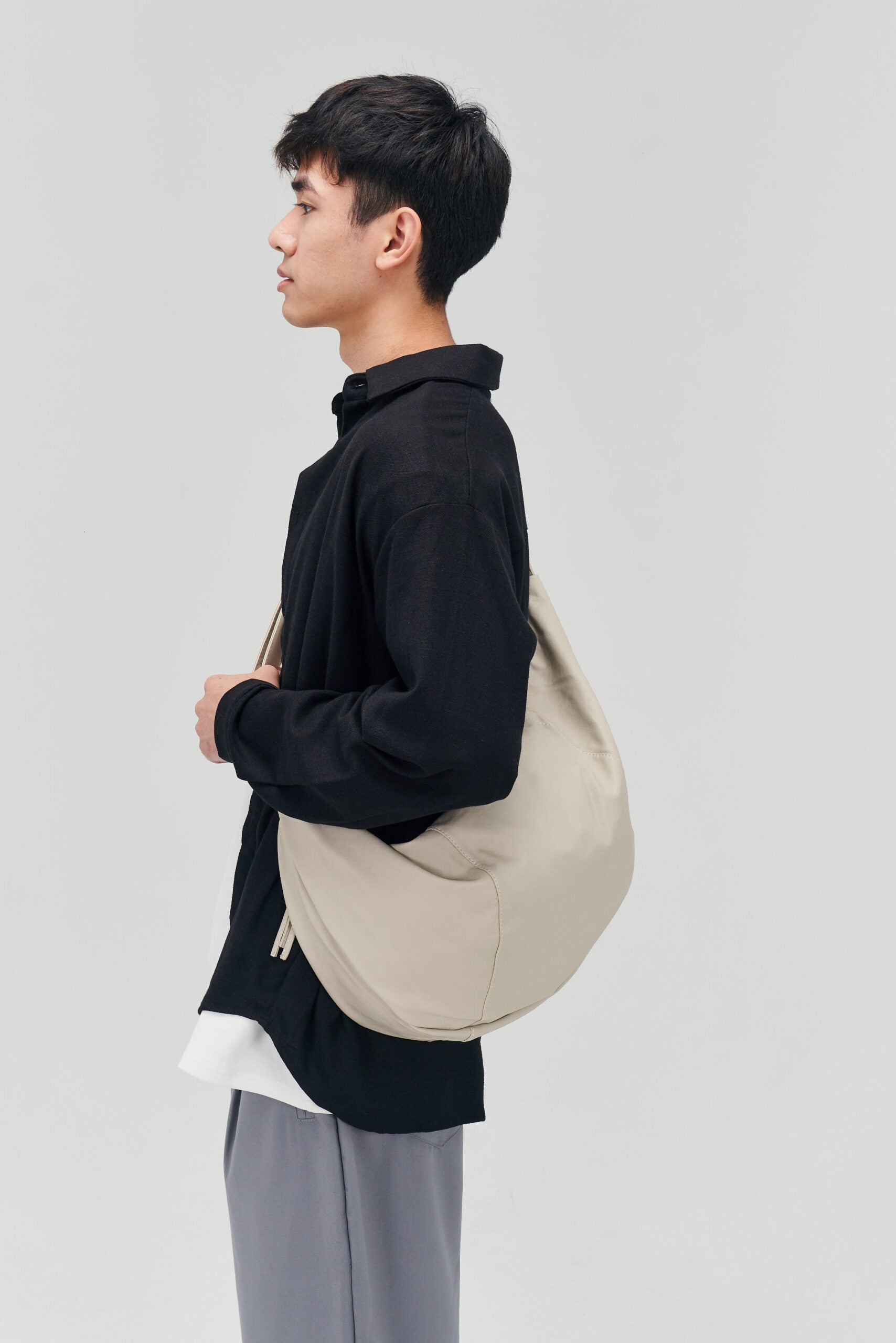 Croissant Leather Crossbody Bag (Off White)