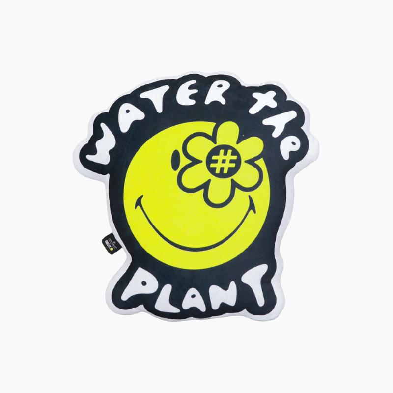 Water The Plant cuddle pillow featured Water The Plant logo to the front and Water The Plant “Play safe” slogan to the back.