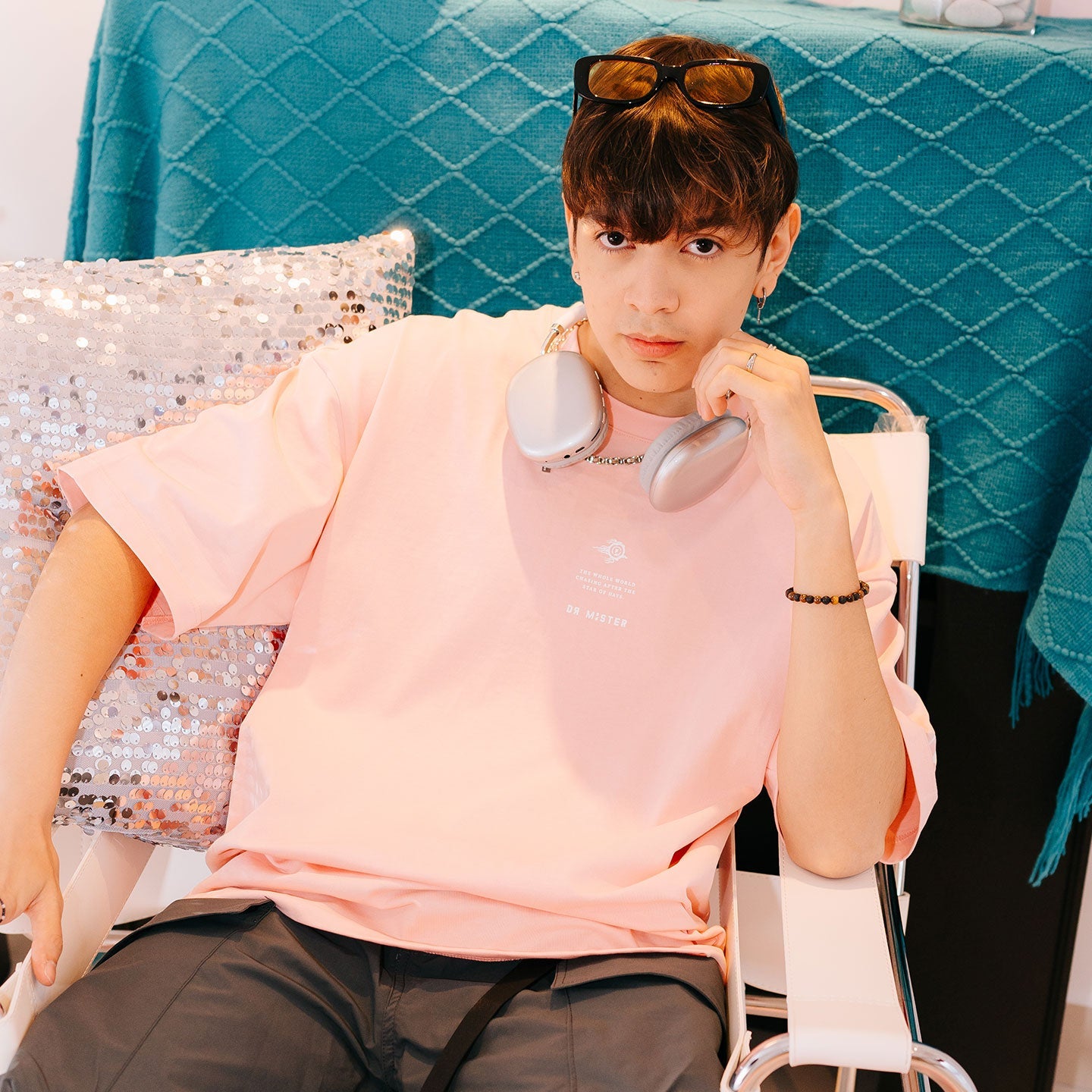 Beige Pink broad tee created from combed cotton designed with a tagline that triggers thoughts about the main graphic and it's complemented with the brand logo on the front. A fireball graphics with design inspiration coming from the pearl that the dragon chases after in Chinese culture, accompanied with a logotype on the back, while the graphic logo is on the left sleeve.