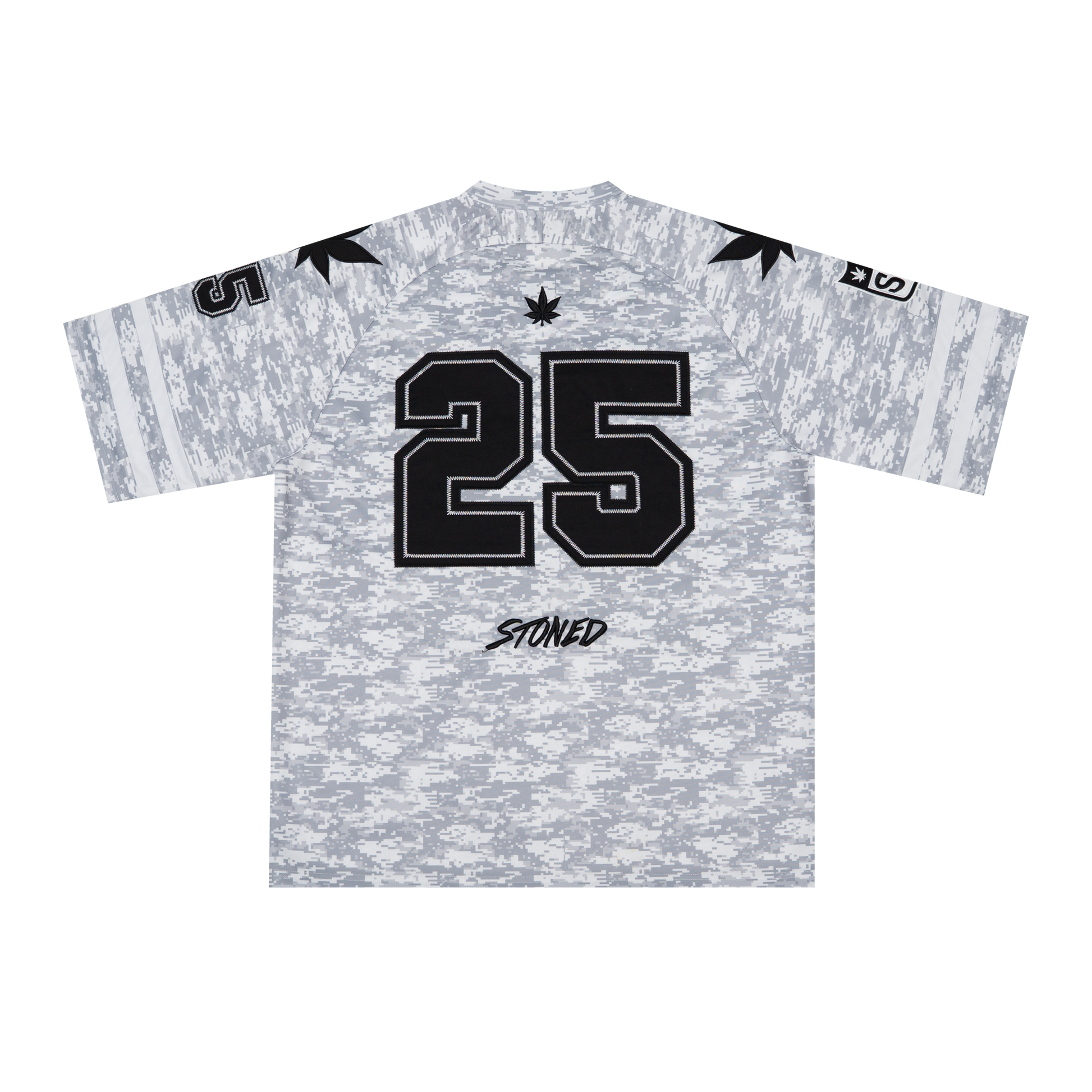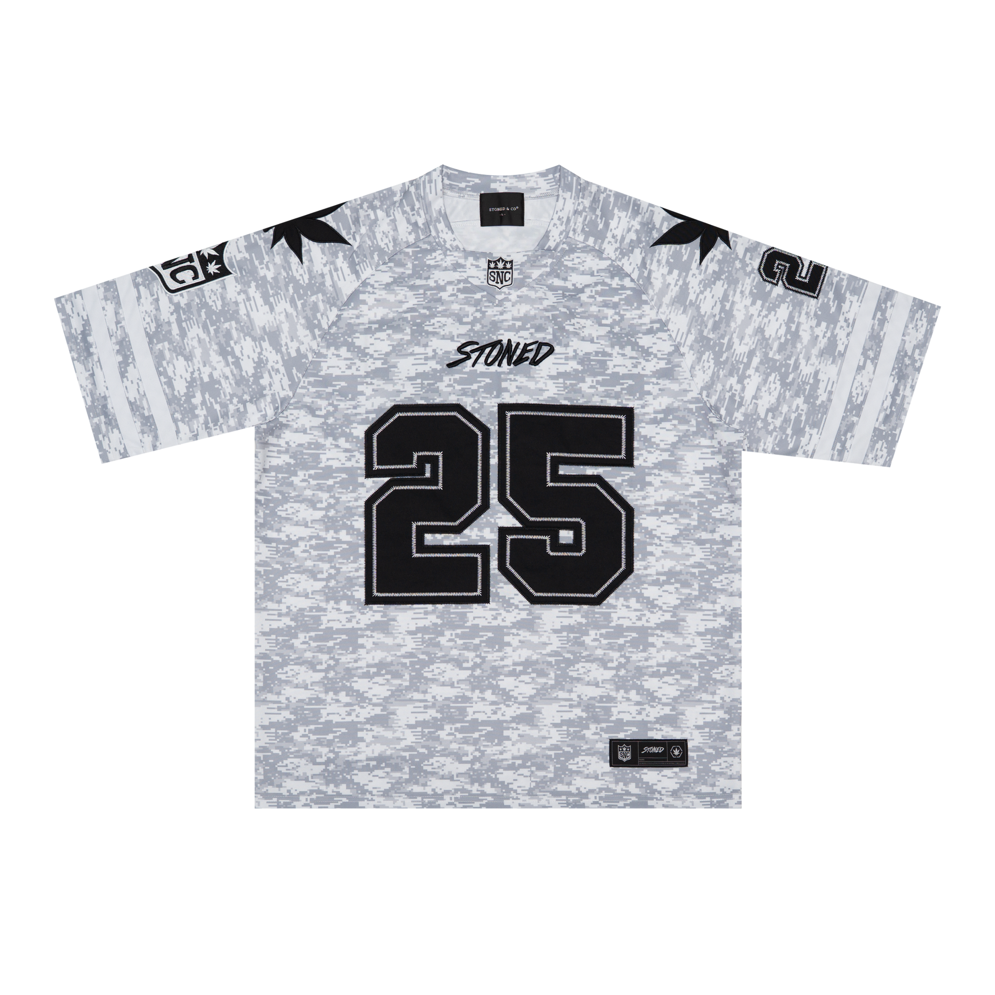 Brings blokecore fashion back into the spotlight. Where modern streetwear meets the raw intensity of NFL spirit. Inspired by the fast-paced rhythm of the game, this piece channels the essence of power, teamwork, and unity. Featuring a digital camo design, it reflects the balance of defense and offense. A reminder that true force lies in both strategy and style. A fusion of sportswear and streetwear, envisioned through the lens of Stoned & Co.