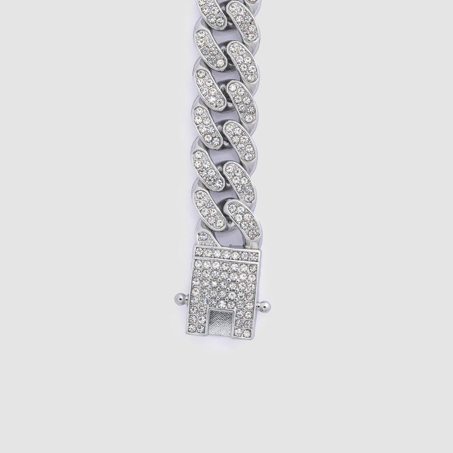 Glass Stone Cuban Bracelet Silver