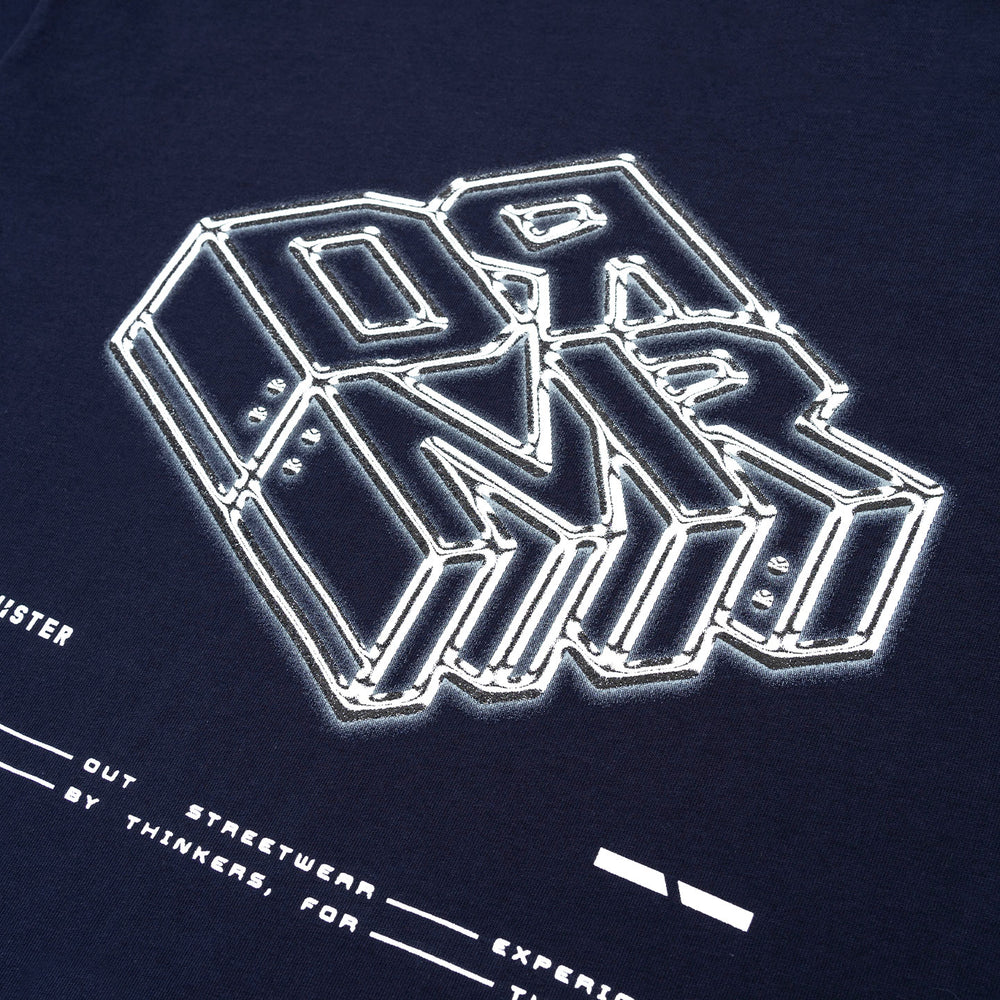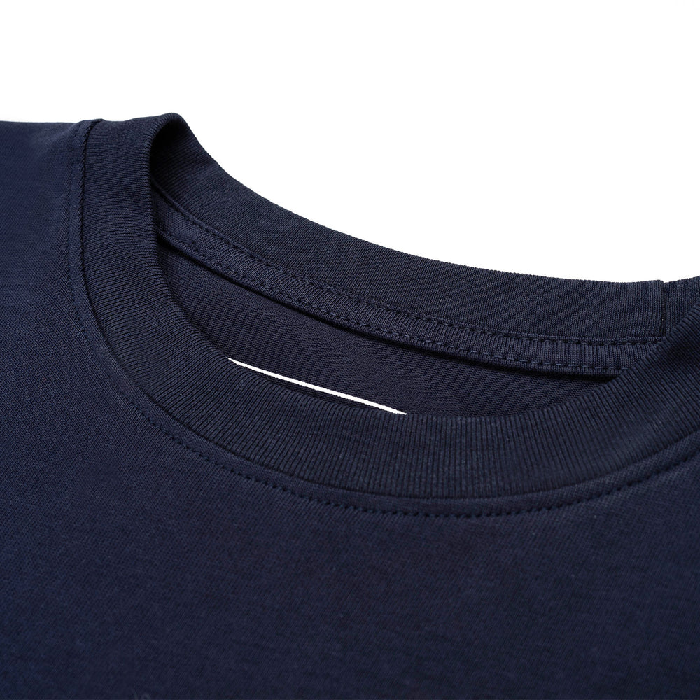 Made from 270gsm interlock combed cotton, the blue broad tee features a metallic-effect abbreviation logo, complimented by our brand motif, logotype, and slogan. The loose fit tee also showcase mini abbreviation logo together with scale-like pattern and logotype.
