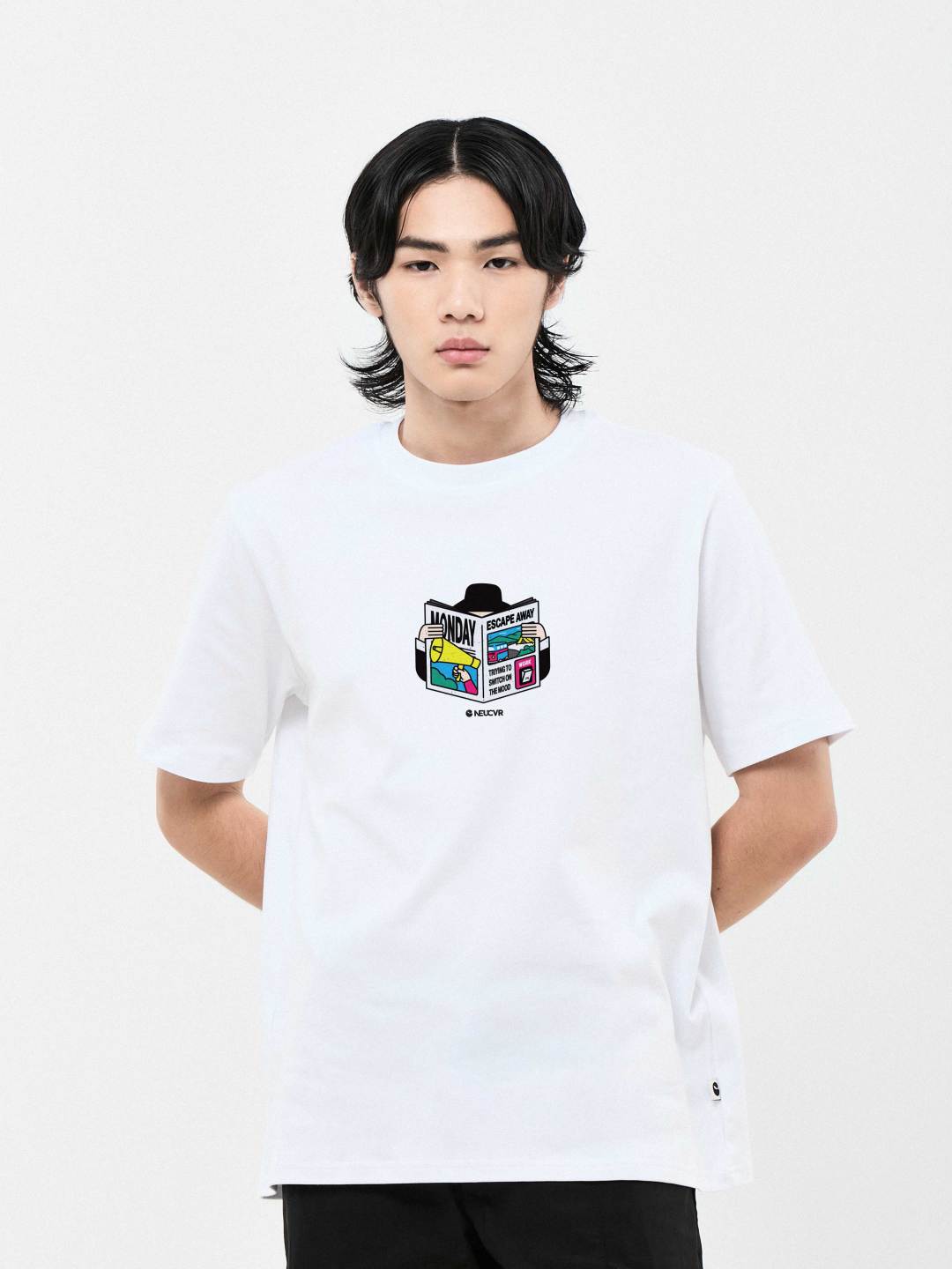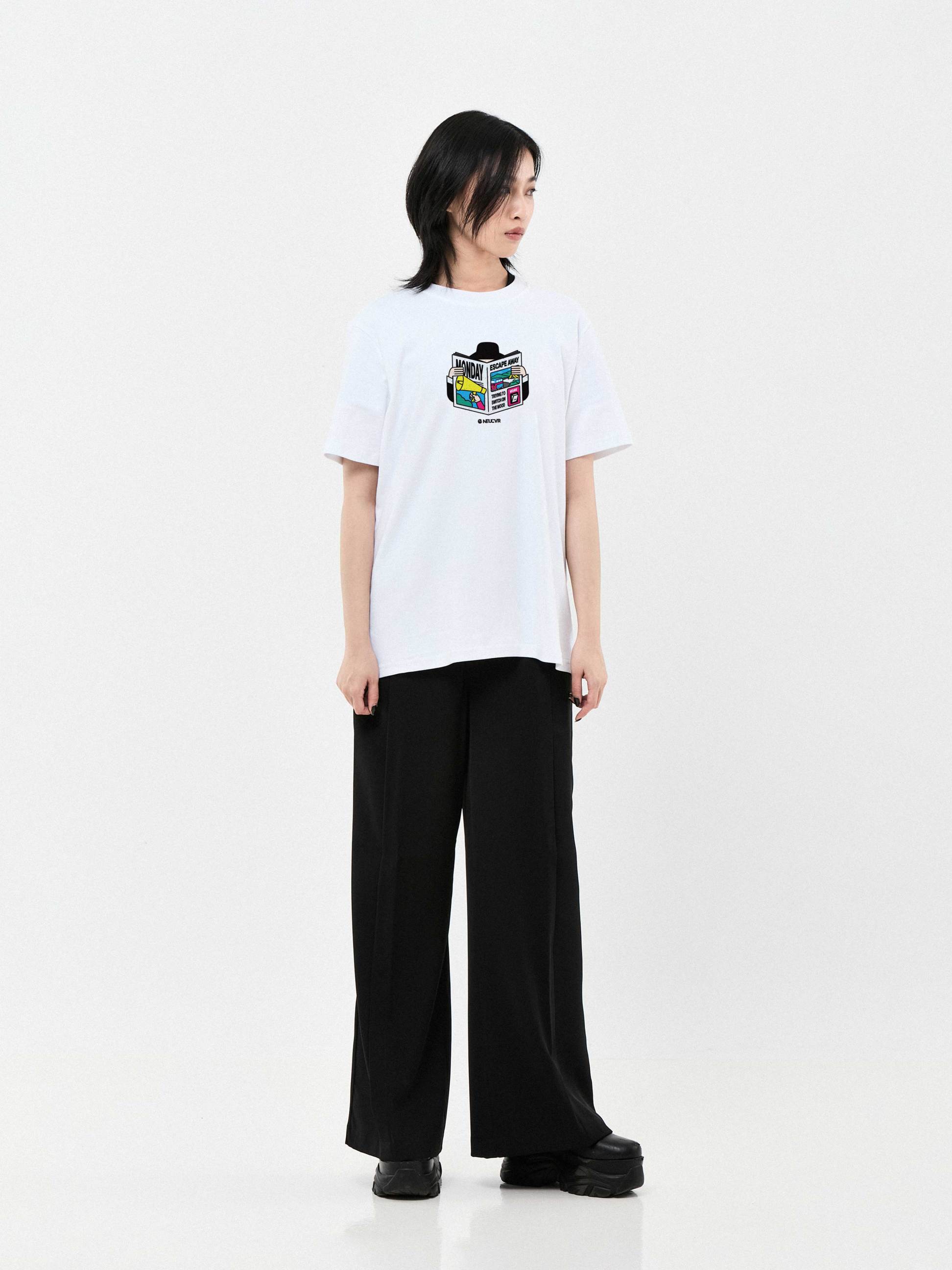The Monday News Tee features a playful graphic of an uncle reading a newspaper, with hidden meme details that say, "Trying to Turn the Mood On." A fun and lighthearted piece to lift your Monday spirits.