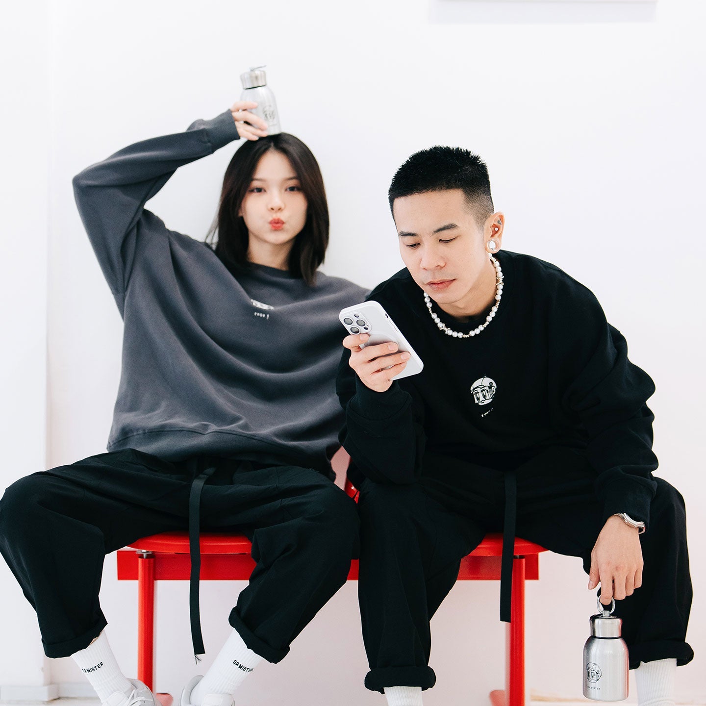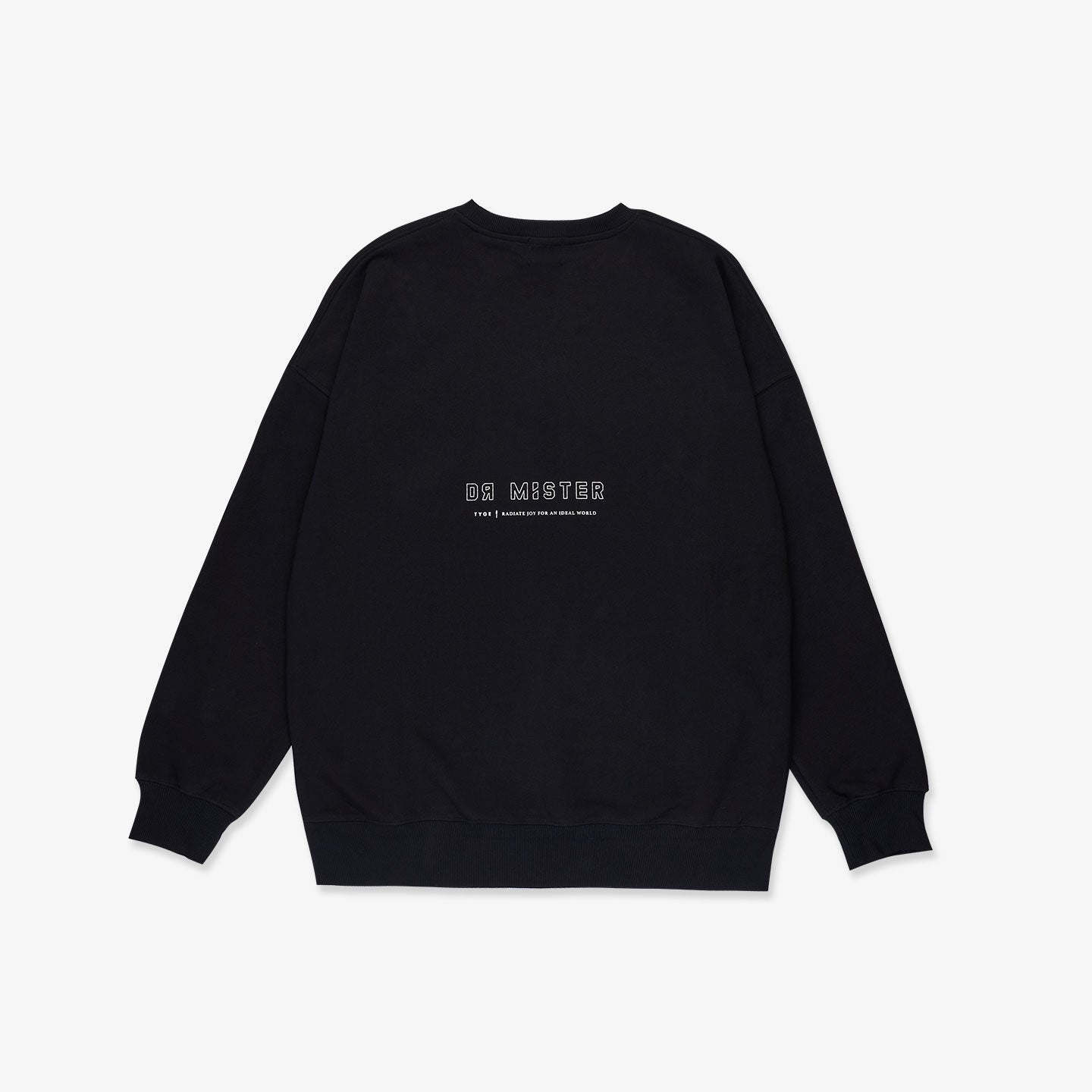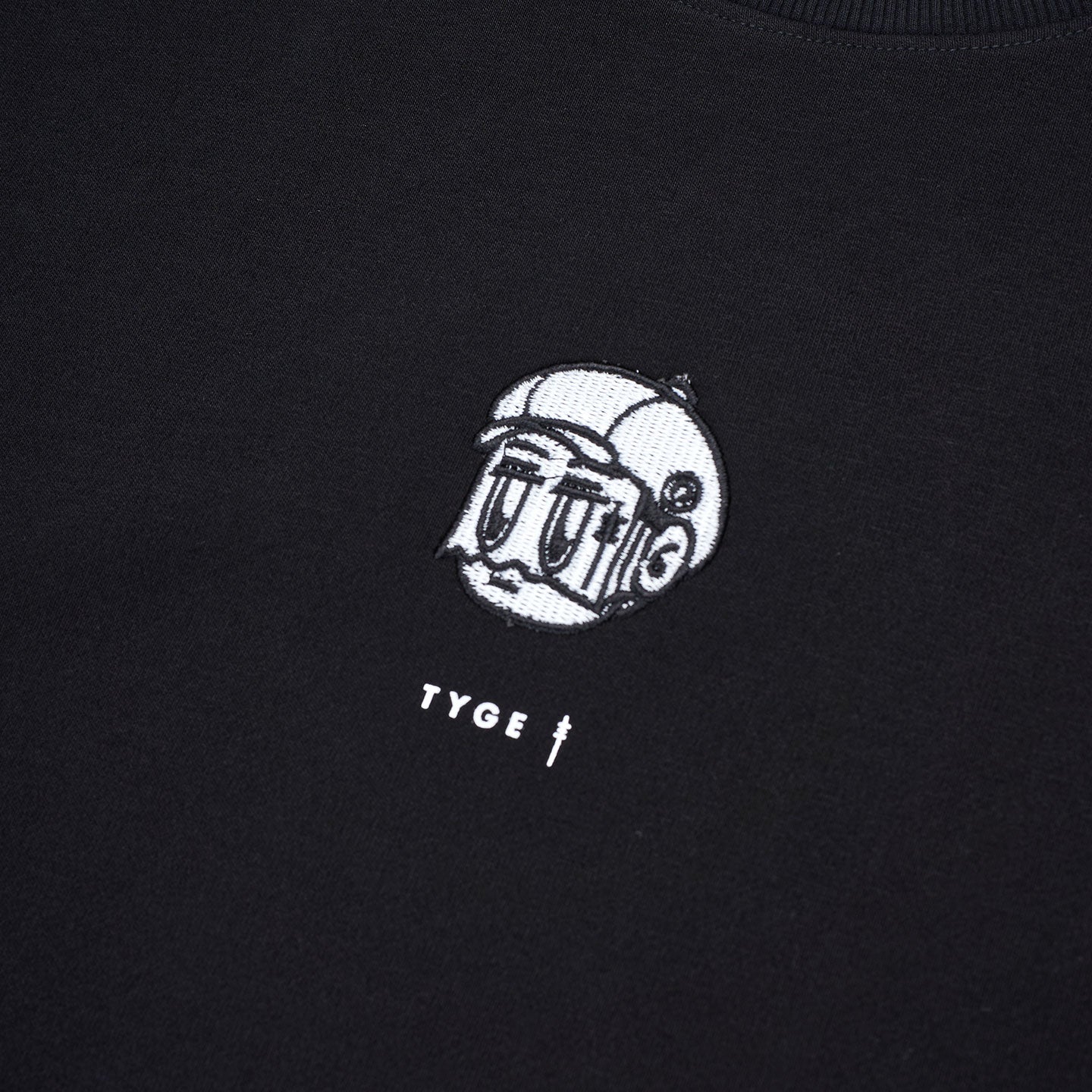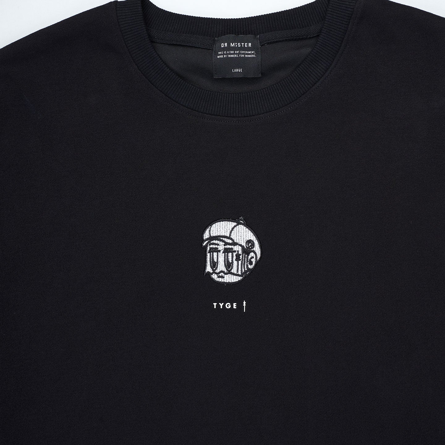 The black dropped shoulder sweatshirt is embroidered with a 'TYGE' introductory graphic in monochrome finishing. The back features the brand logo and the collection's tagline - 'Radiate Joy for an Ideal World'. The sweatshirt is constructed with hybrid cotton polyester fabric with 350gsm 's weight, the perfect thickness for build and breathability.