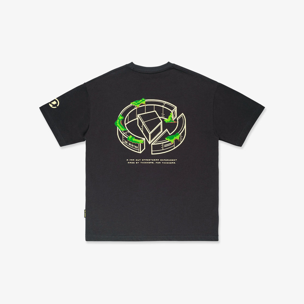 Crafted from premium interlock combed cotton, the grey broad tee features an imagined futuristic campus of our graphic logo covered in a high-quality flocking printed moss/frost. Featuring a mini campus together with the scale-like pattern and our logotype at the front.