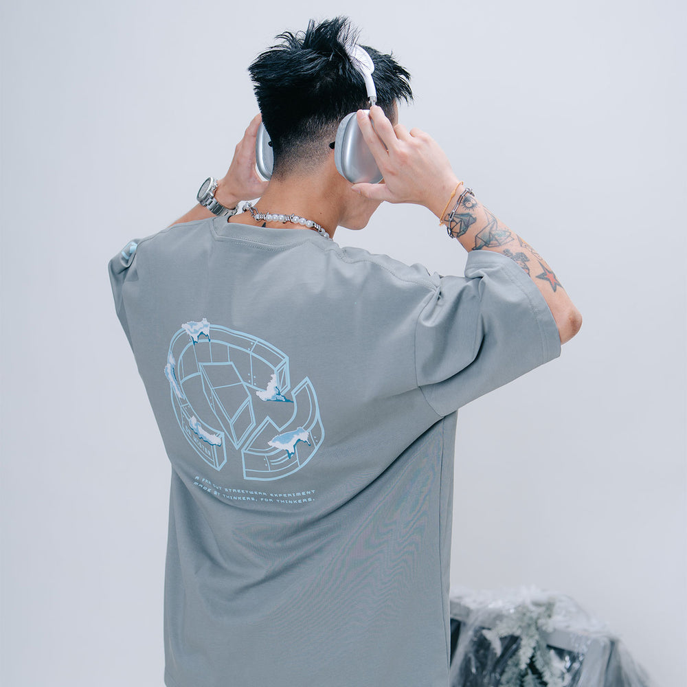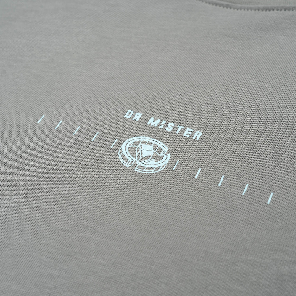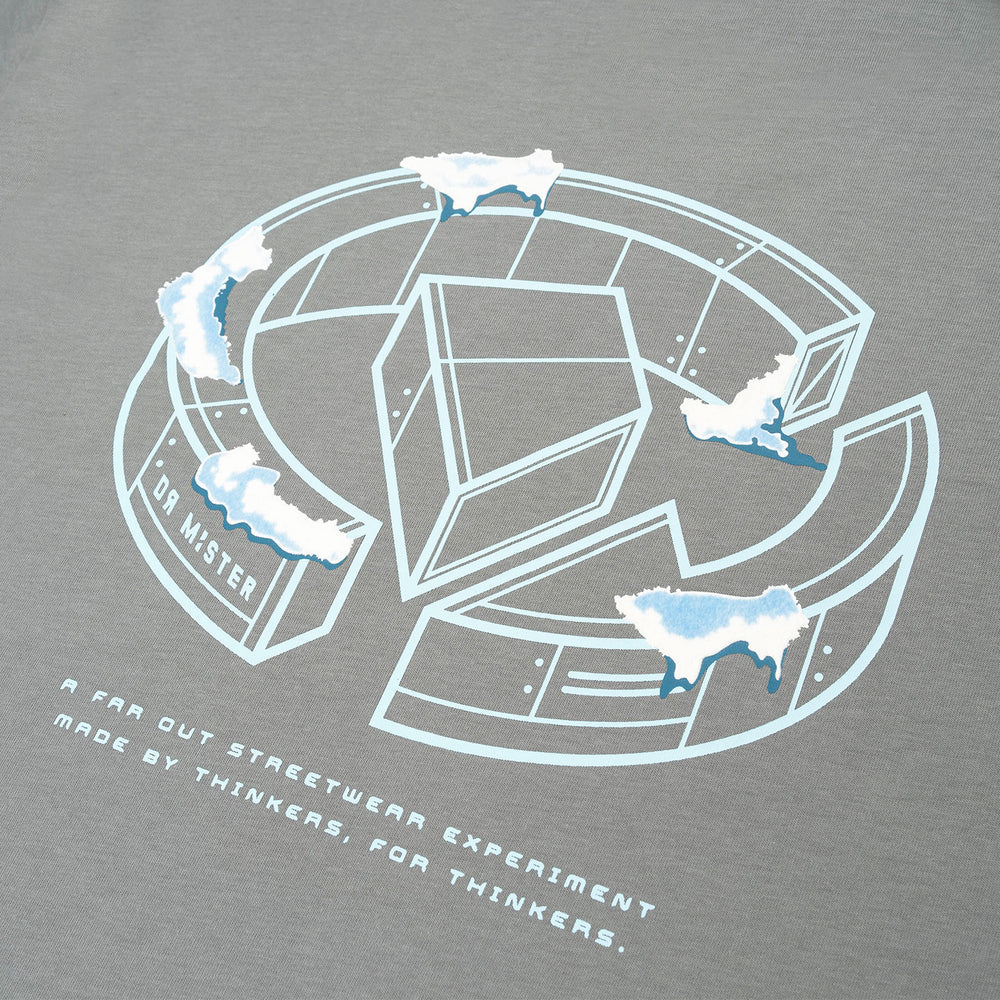 Crafted from premium interlock combed cotton, the light grey broad tee features an imagined futuristic campus of our graphic logo covered in a high-quality flocking printed moss/frost. Featuring mini campus together with the scale-like pattern and our logotype at the front.
