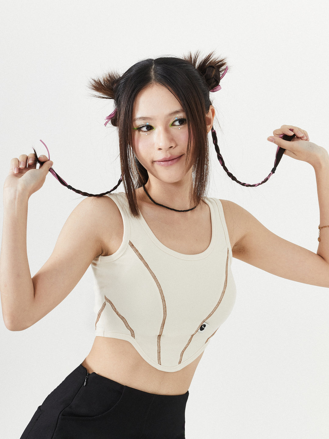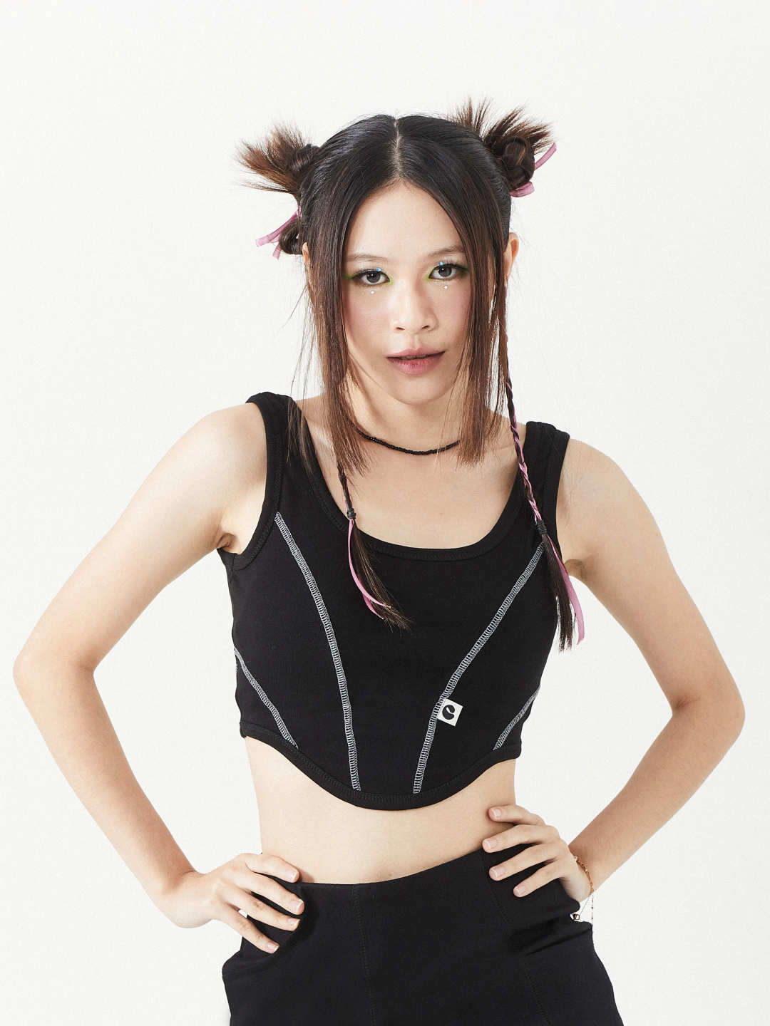 Crafted from ribbed fabric, this top features a corset cutline that effortlessly contours your body shape, ensuring comfort without compromising on style with addition of our signature logo label.