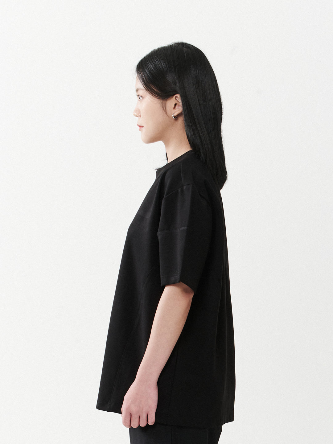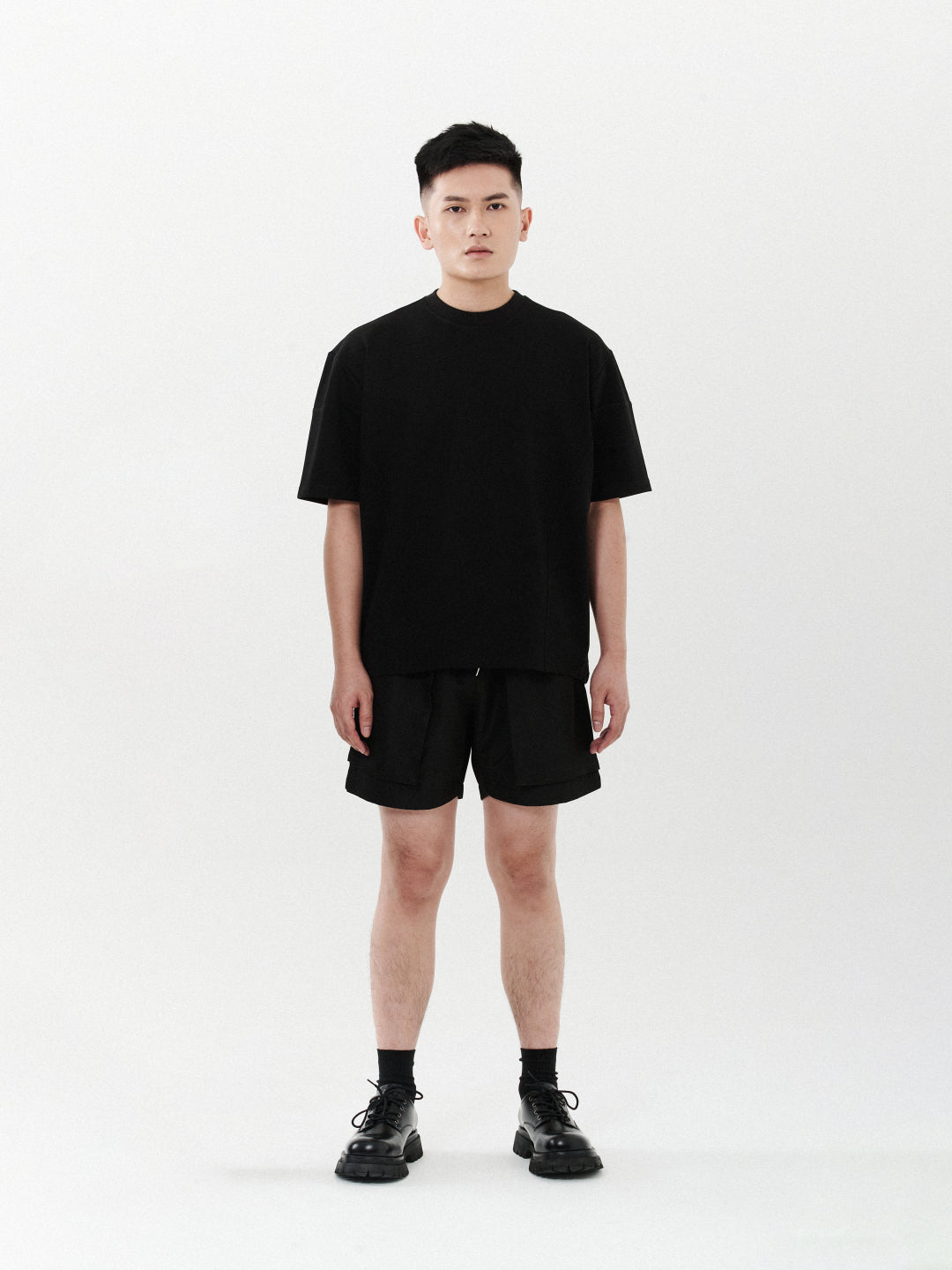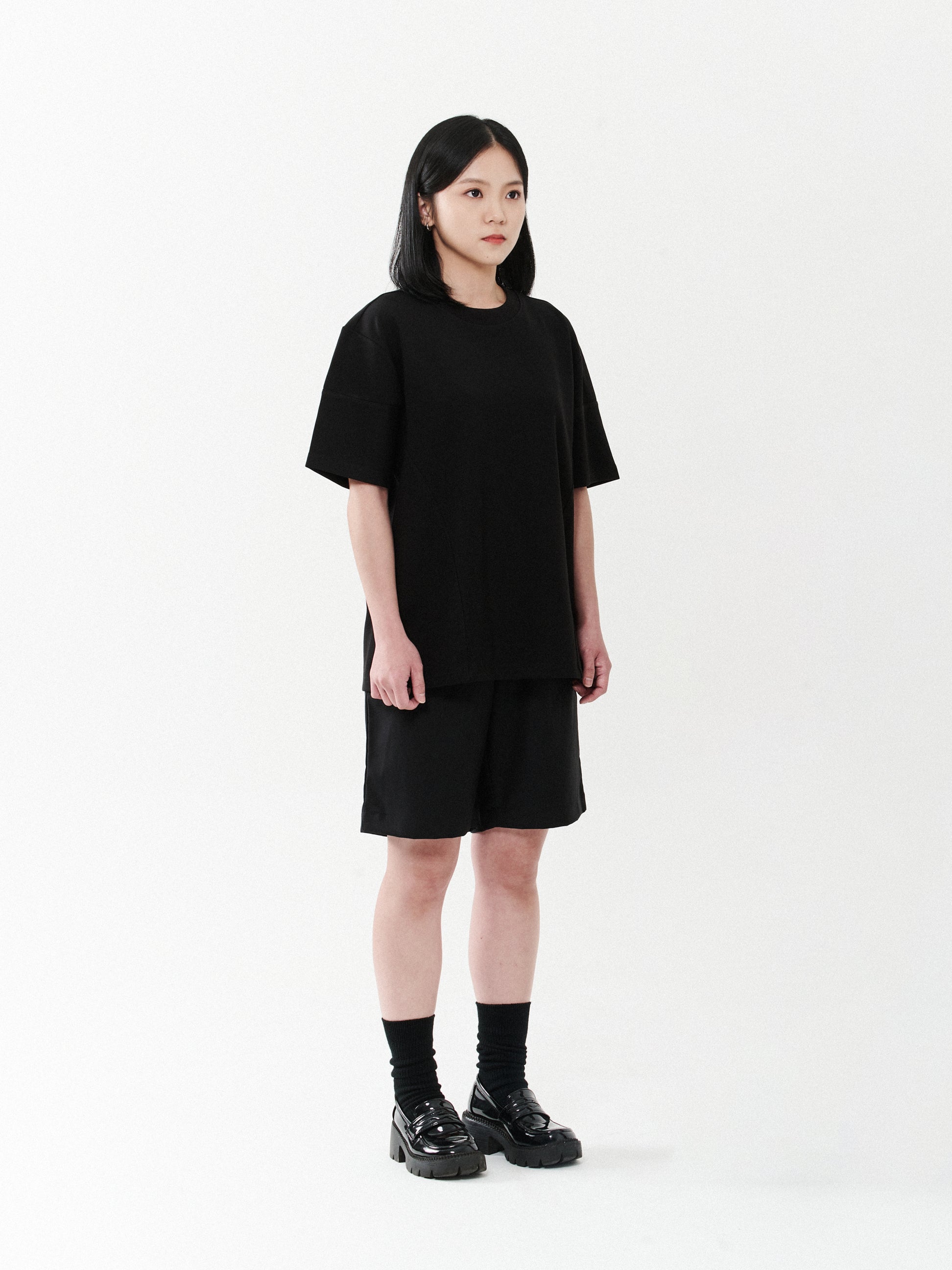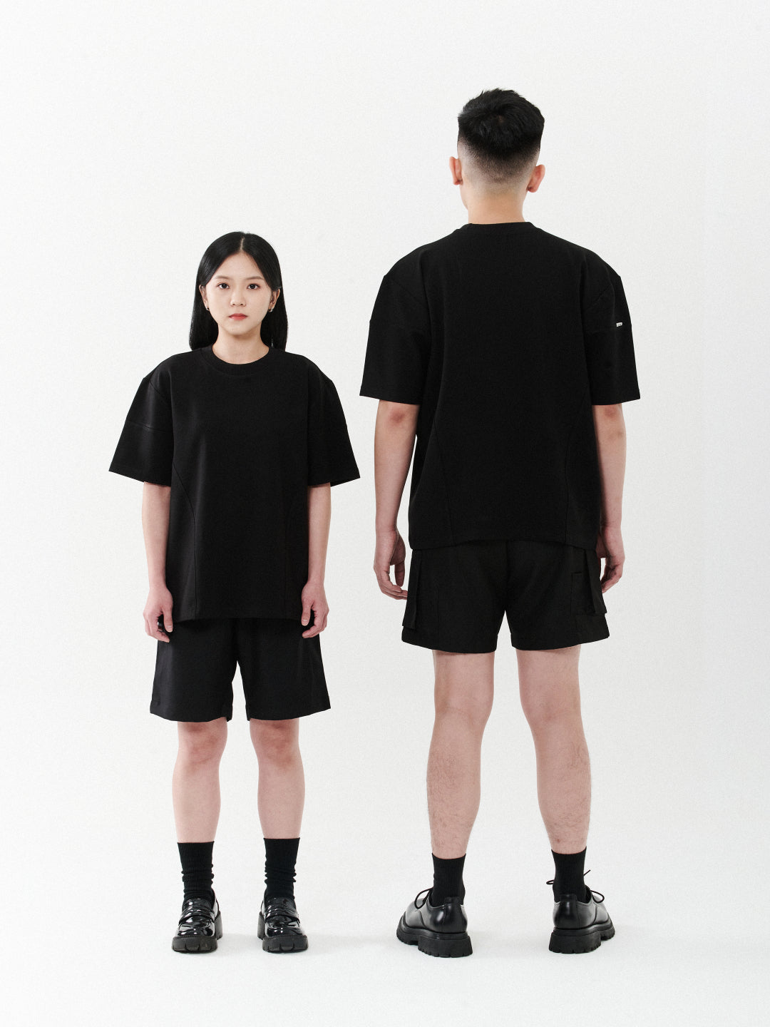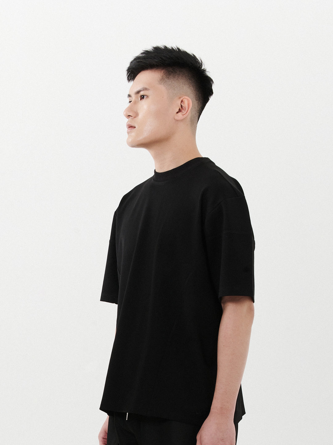 Signature oversized unisex shirt features side cut and sew details, with minimal embroidery on the left corner. Crafted from fancy knit fabric, it exudes style and comfort, blending a relaxed fit with subtle design accents.