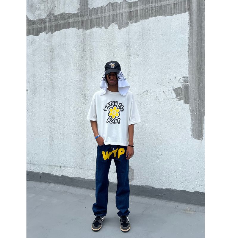 - The bottom right corner of the T-shirt has WTP's classic embroidered flower.
