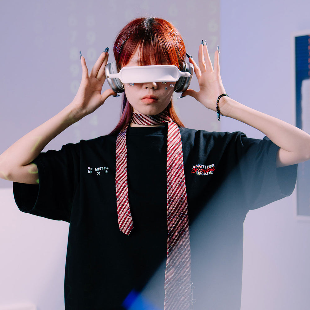 The blackcotton tee features a monochrome Gameboy-inspired graphic, contrasted with the pixelated Tyge on the screen alongside the quote: “Today’s masterpiece, tomorrow’s pixels. Stay in motion.” The anniversary logo and slogan graphic are placed on both sides of the back.