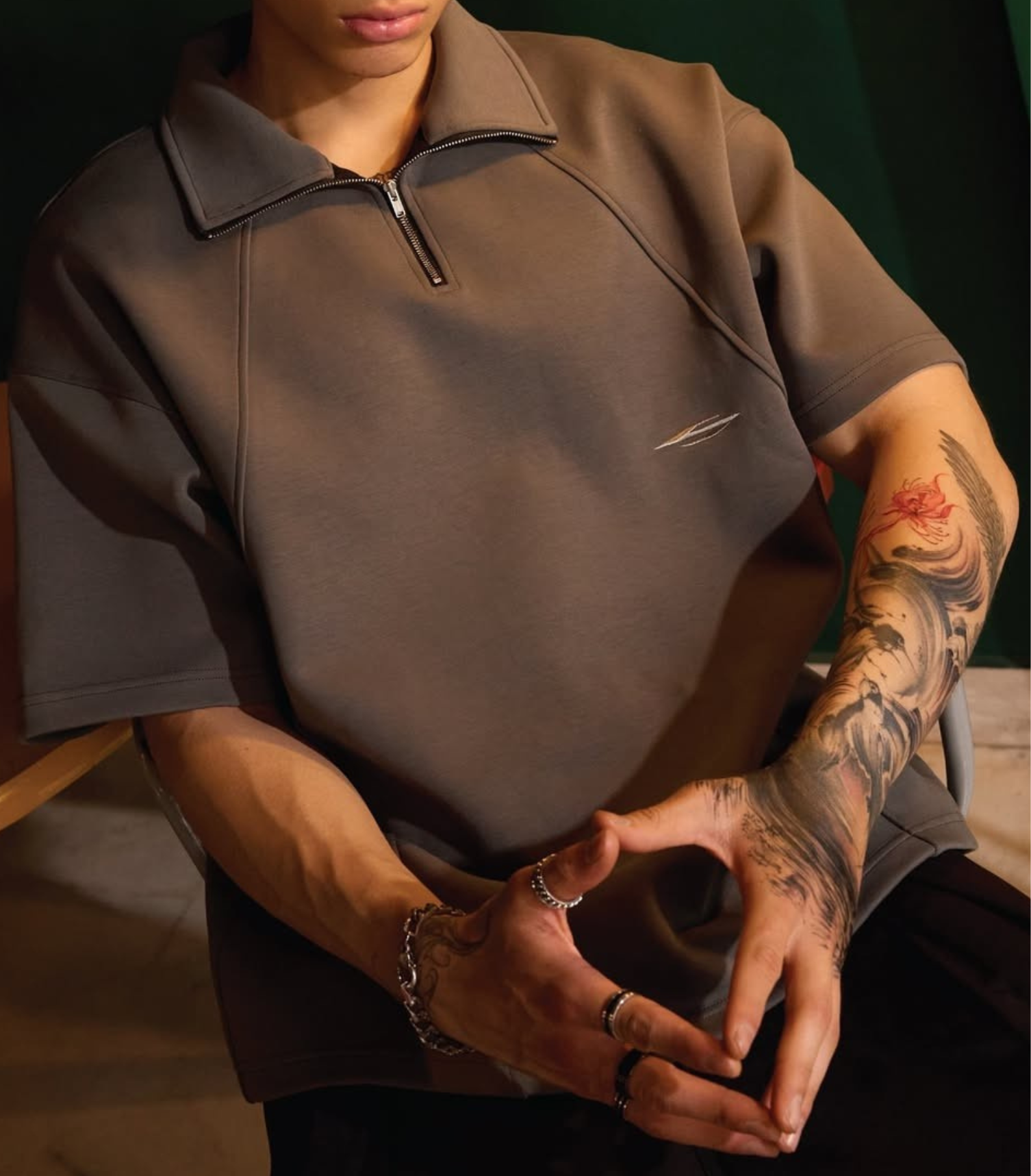 Sold outEMBROIDERY POLO KHAKI SHIRT